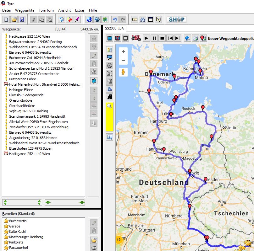 Lt. Routenplaner (Tyre schnellste Route): 3443 km
